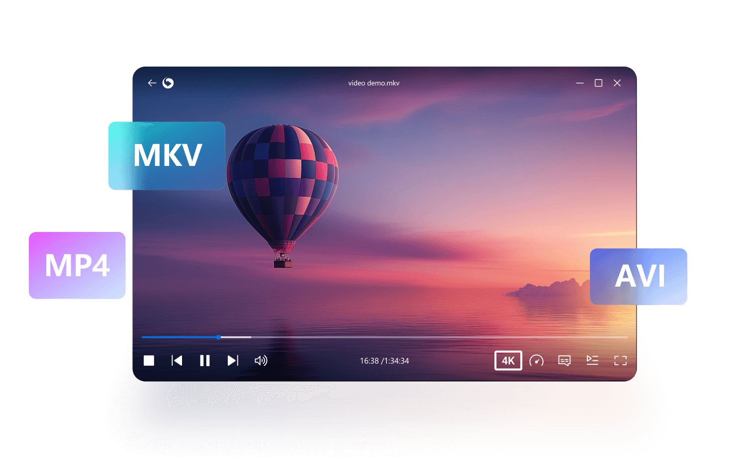 支持MP4/MKV/AVI/SUB/MOV等常见百种格式,无需转码也能轻松播放,针对4K/8K/HDR视频优化解码,播放不卡顿色彩更还原